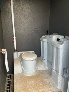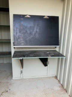 Fold up work station and plan board. Separate toilet with lockable door, chemical toilet and wash basin, uses built in water storage tank with used water/ sewerage captured in dedicated tank that can be pumped out.
