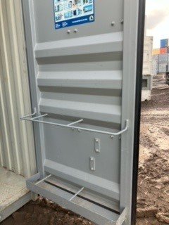 Containers are wind and water tight, fitted with lock box on main doors, recessed vent pipe and comes with recessed box ready for you to install power connection where lights and power might be required.