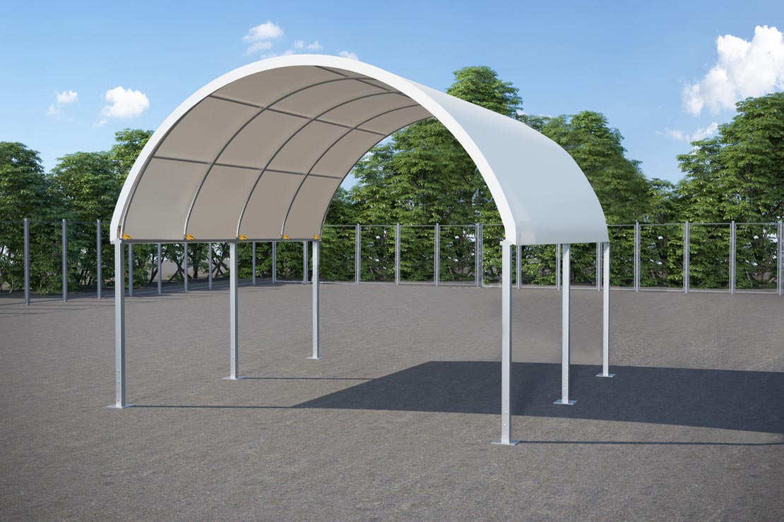 The 20ft/6m post set and dome shelter combination provides the same undercover storage area as a two-container-mounted shelter. This makes it an ideal choice for work sites or commercial properties where space is limited.