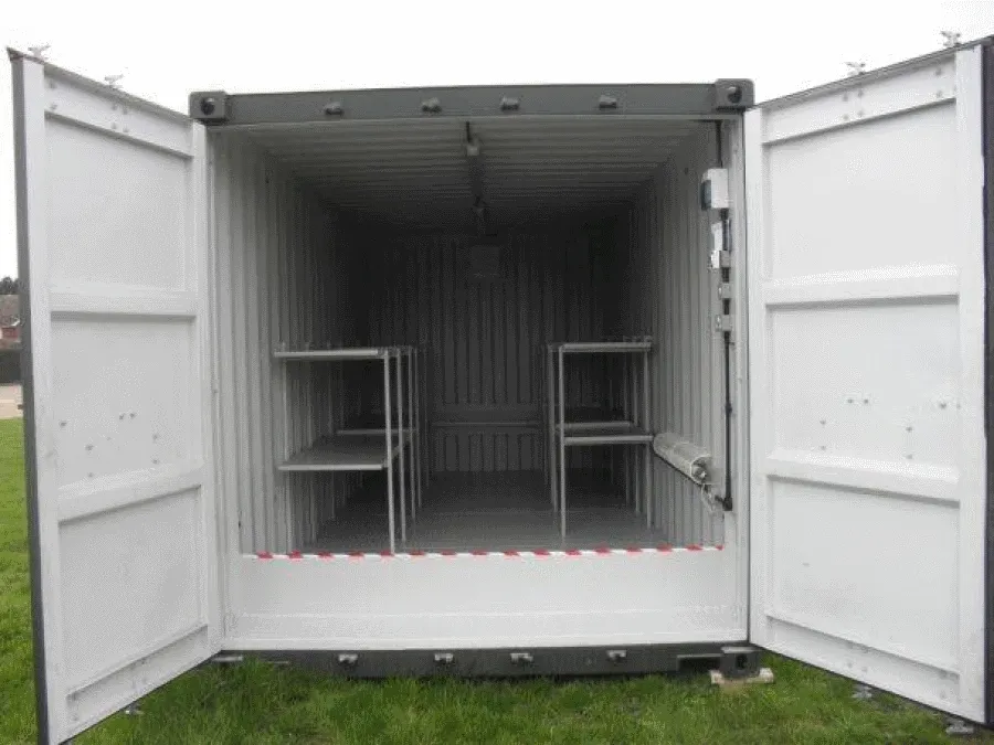 A 20ft bunded store with flat floor and a 20ft bunded store with open mesh floor are also available to buy.