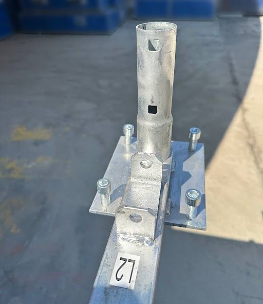 Proceed to hoist each assembled arch truss one at a time into position. This step will require lifting and safety equipment to perform the task to WHS standards. Positioning each arch onto the previously installed base plates on top of the shipping containers, and secure them down with the supplied nuts and bolts.