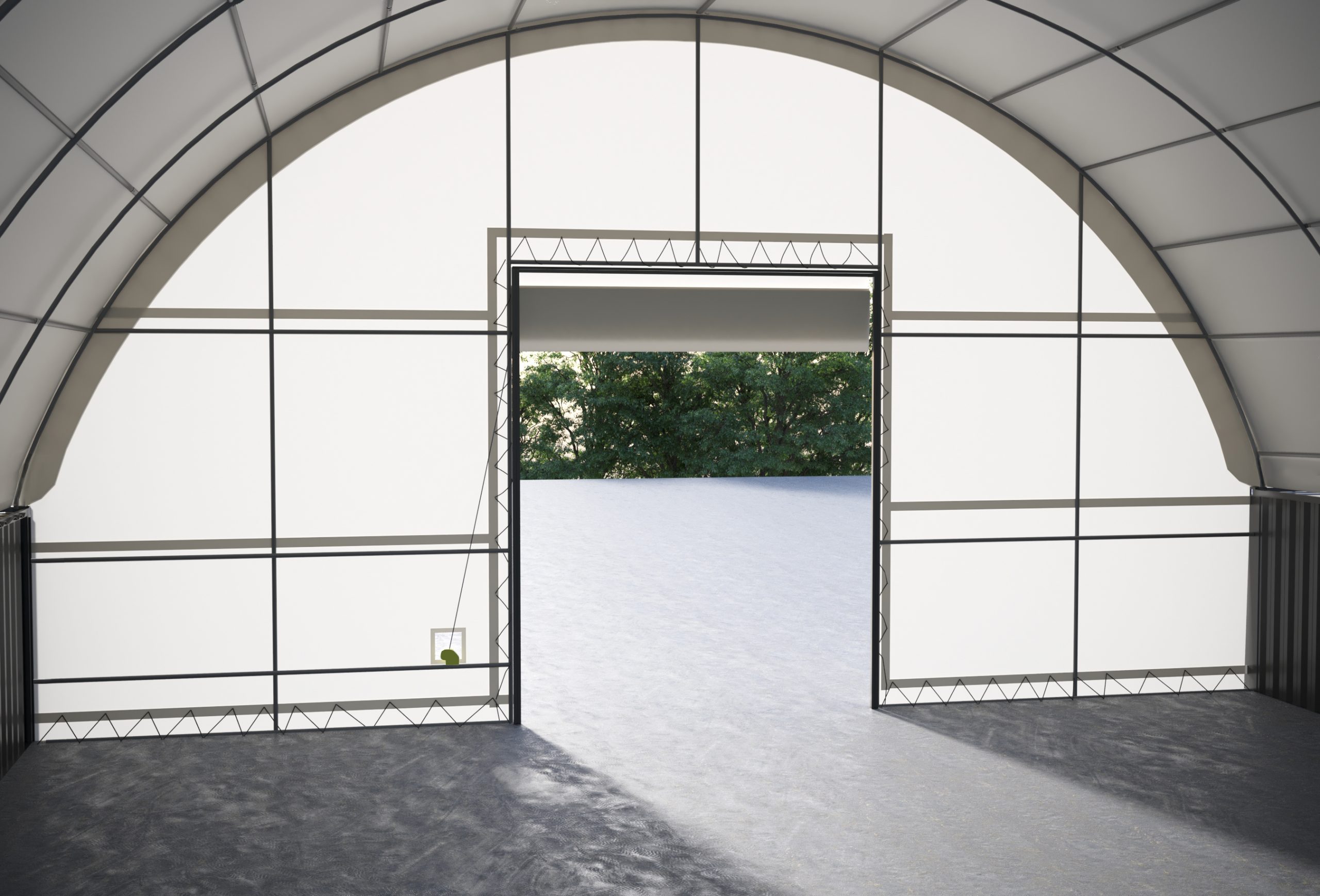 This custom-built Front Wall will also fit any Quality Domes Direct Dome Shelter with a 20ft/6m span (opening), including a 40ft Container Dome shelter (6m wide opening X 12M long).