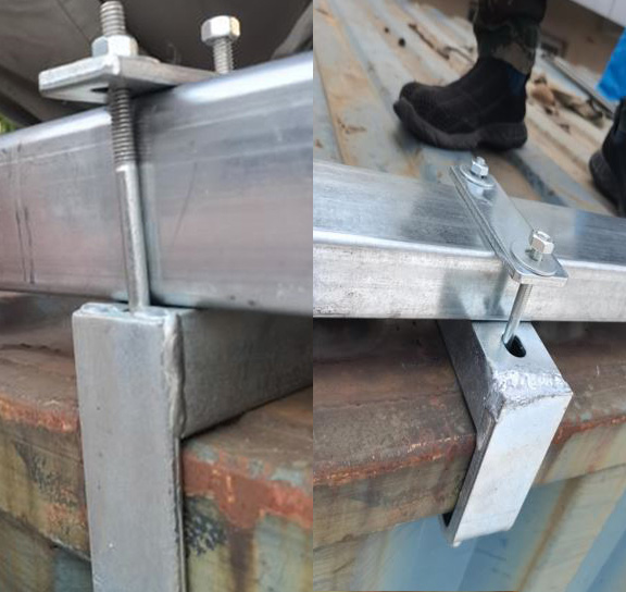 This GREY colour container shelter easily connects to 40ft shipping containers using the no-weld Quicklock system firmly secures the roof truss base plates and rails into position on top of the container. A base plate rail is clamped to top edge of the container, and additional trusses firmly attached and bolted on. The whole assembly process makes building the shelter super-easy because no special tools are required.