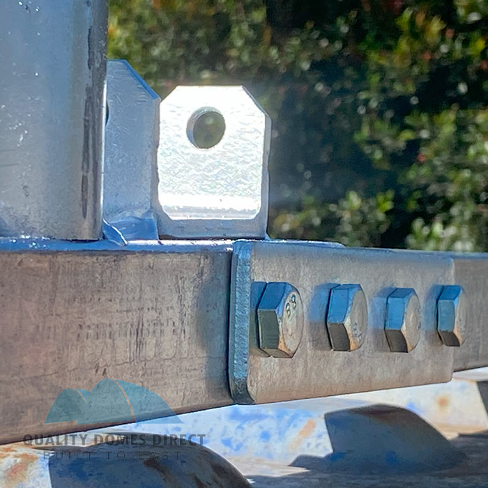 Another great design feature of this 26ft wide (8m) dome shelter is it can be quickly built. Everything bolts together, therefore if required, it can be easily dismantled, relocated and rebuilt without affecting the structural integrity of the steel frame or PVC roof cover.