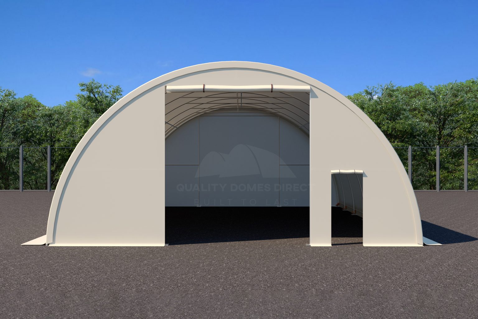 The single truss, galvanised steel tube frame gives you the confidence you need to know you’re buying a solid structure which will last and last. The shelter fabric covering the roof and sides is made from one piece of heavy-duty, 650GSM PVC Fabric, is UV protected and Fire Retardant.
