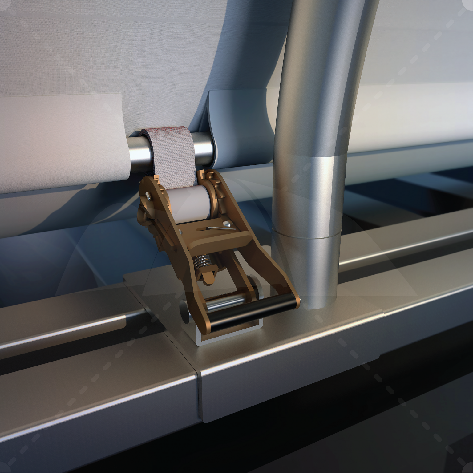 The container anchoring assembly features our Quicklock ‘no weld’ design, where a simple twist and lock of the base rail assembly firmly locks the four corners of the roof truss base plates into position on top of the containers. Our specially designed connection assembly features additional HEX bolts used to level the base plate on top of the container corner blocks, providing a level foundation.