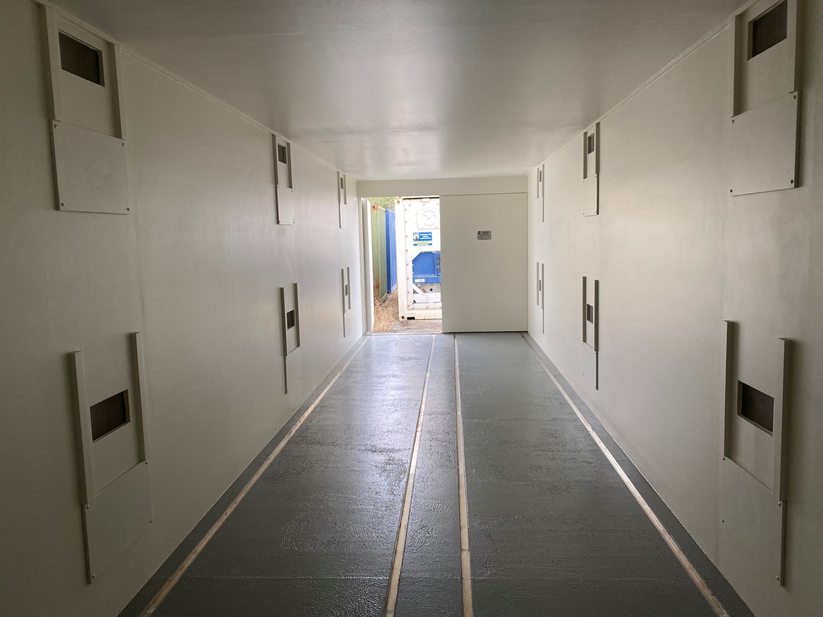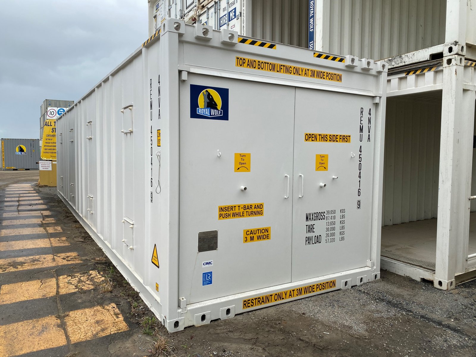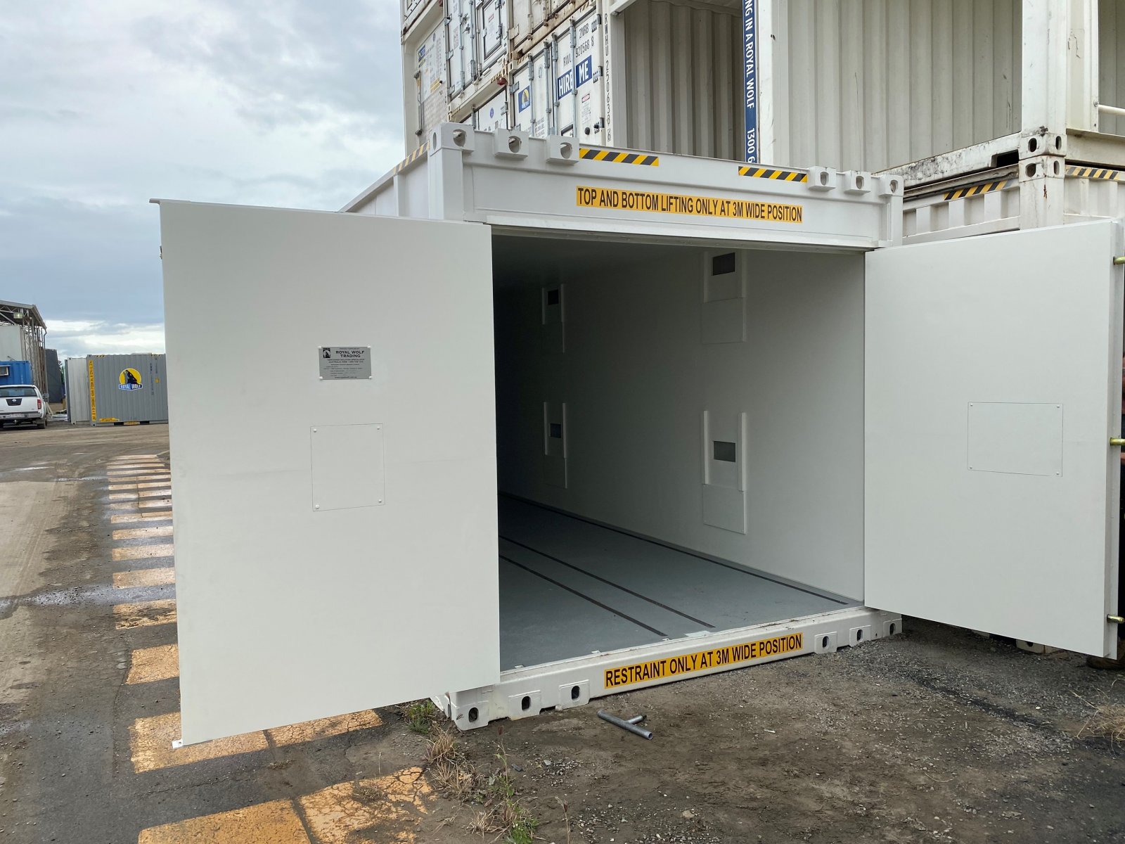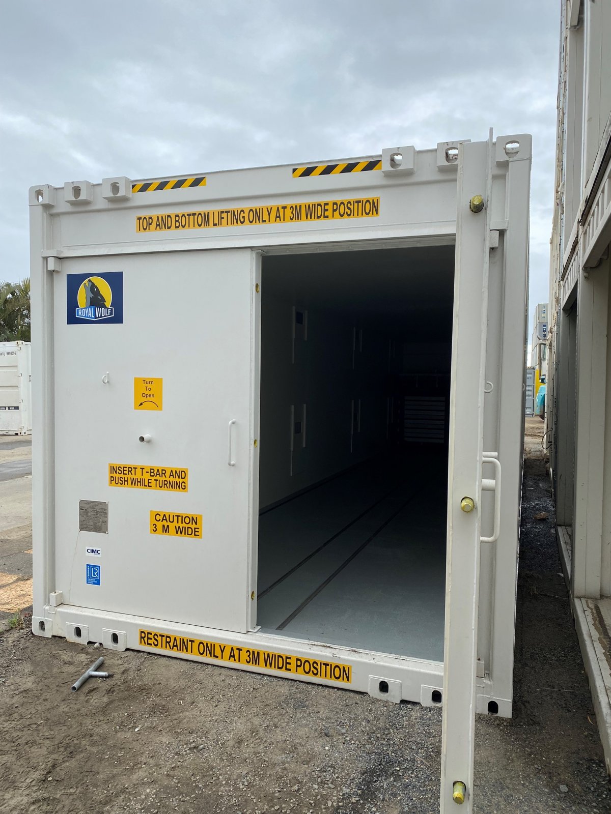 Meeting the requirements of AS2187.1-1998, Royal Wolf’s relocatable explosive magazines offer ventilated storage, the security of 5mm thick steel walls that are fully insulated and timber lined and a 10mm thick door with key and manual locking devices. The all steel external construction of the explosive magazines offers impact and cyclonic protection. Royal Wolf offers support in certification, footing design and detail to assist in installation. The relocatable explosive magazines (REMs) are fully ISO compliant for easy transport.