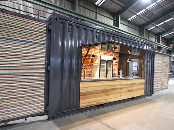 Port Shipping Containers specialise in shipping container modifications, building practical, cost effective solutions to suit your needs. Our shipping container bars are no exception when in comes to innovative design and construction. We can build the ultimate cargo bar (for example) from a robust 10 ft, 20 ft or 40 ft shipping container with a near endless range of Container Accessories including servery windows, hydraulic decks, remote controlled awnings and more. Take a look at some of the Shipping Container Bars we have built for our customers below.