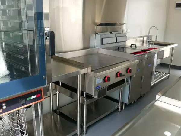 A shipping container kitchen is a practical solution for businesses looking to expand on their current cooking facilities. An auxiliary kitchen is usually required when the initial kitchen is too small or too far away from patrons, especially if they are dining in an outdoor area away from the main facilities. These units are particularly popular with clubs and recreational parks where the kitchen is out in the open and can be locked up when not in use. As our shipping container kitchens ar built off-site at our factory, this means there is no interruptions to your business – no tradesman coming and going or loud construction noises at your premises. Our shipping container kitchens can be custom built to suit our clients requirements in fast turn around times, fitted with all the neccessary appliances to be ready for immediate use on delivery. Our Shipping Container Kitchens are similar to our Container Cafe builds, but usually have more commercial cooking equipment installed.
