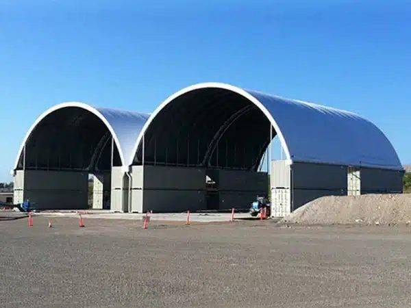 Construction of a Container Shelter is remarkably easy for Port Shipping Containers. Depending on the size of the shelter, shipping containers are placed parallel to each other on either side of the space that needs to be sheltered. The domed shelter component is then mounted on top of the parallel shipping containers to create a high-domed cover over the space in between. A secure and sturdy, yet completely portable shelter is now in place. End walls are also available if a completely enclosed shelter is required and both permanent and portable shipping container shelters are available.