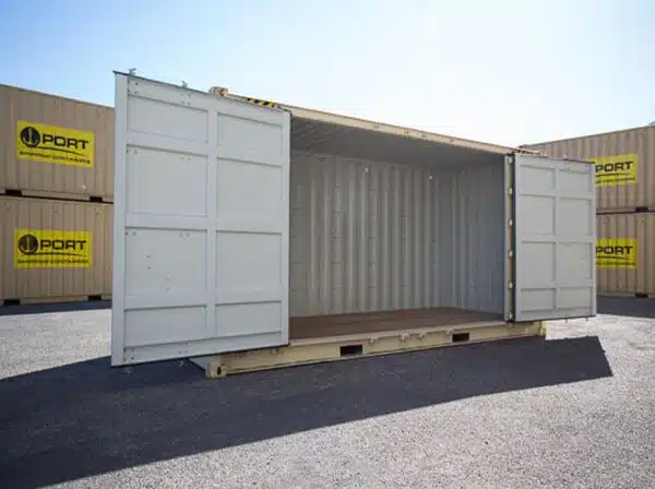 As you would expect from their name, side opening shipping containers open up from the side of the container, allowing for wider and easier access, with one whole side of the container opening outwards via two doors. Something that makes loading and unloading significantly easier. Particularly if you’re stacking goods like boxes or crates with a forklift.
